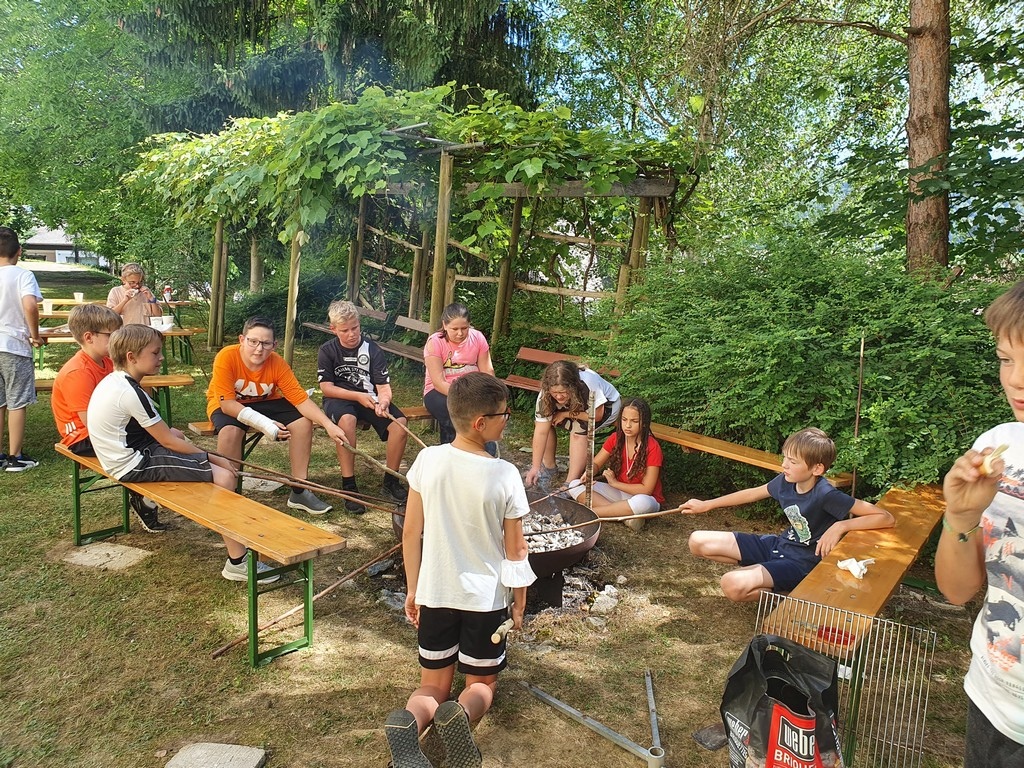 Die Woche begann sportlich mit einem Wandertag nach Kirchbach und wieder zurück entlang der Himmelsleiter. Es wurde gelacht, Fußball gespielt, geredet und miteinander Zeit verbracht. Nach einem Rückblick des heurigen Schuljahres wurde gemeinsam am offenen Feuer gegrillt: Gewappnet mit Steckerlbrot, Würstchen, Marshmallows wurde gegessen, gespielt und sich besser kennen gelernt. Der Tag darauf begann und endete ganz entspannt im St. Stefaner Freibad. Im Anschluss daran wurde noch gemeinsam die Klasse geräumt und für das neue Schuljahr vorbereitet. Unter dem Motto „Einfach beisammen Sein und Zeit miteinander verbringen“ endete diese letzte, sehr aufregende Schulwoche.