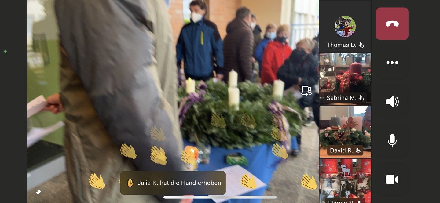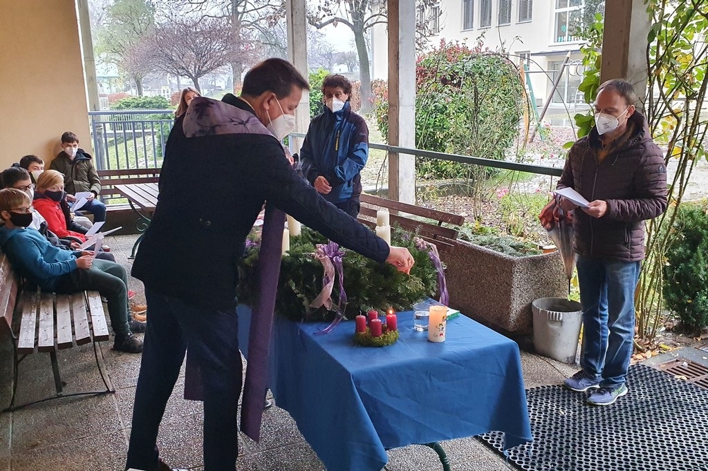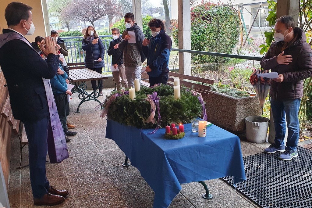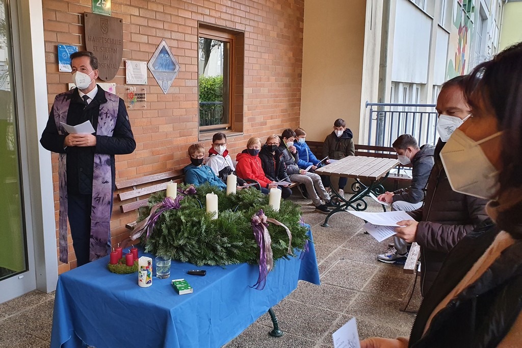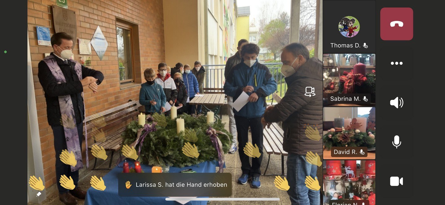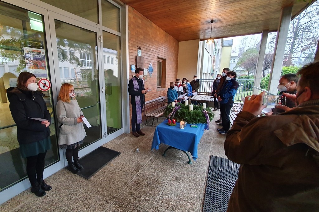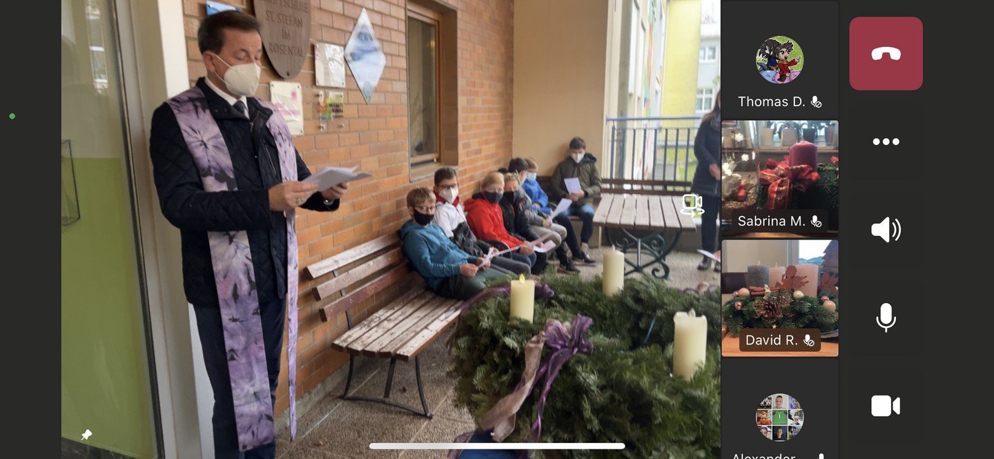 Außergewöhnliche Zeiten erfordern außergewöhnliche Maßnahmen. Doch auch in dieser coronabedingten Ausnahmesituation gab es vergangenen Freitag eine Adventkranzsegnung an unserer Schule. Im Freien, wie es vorgeschrieben ist, fand die Segnung statt und wurde sogar online an die Schüler und Schülerinnen zu Hause übertragen. So, wie der Unterricht in den meisten Klassen zurzeit stattfindet, hat auch der Großteil unserer Schüler und Schülerinnen die Adventkranzsegnung via Livestream zu Hause miterleben können. Die Beteiligung war enorm.