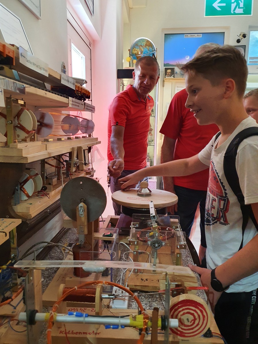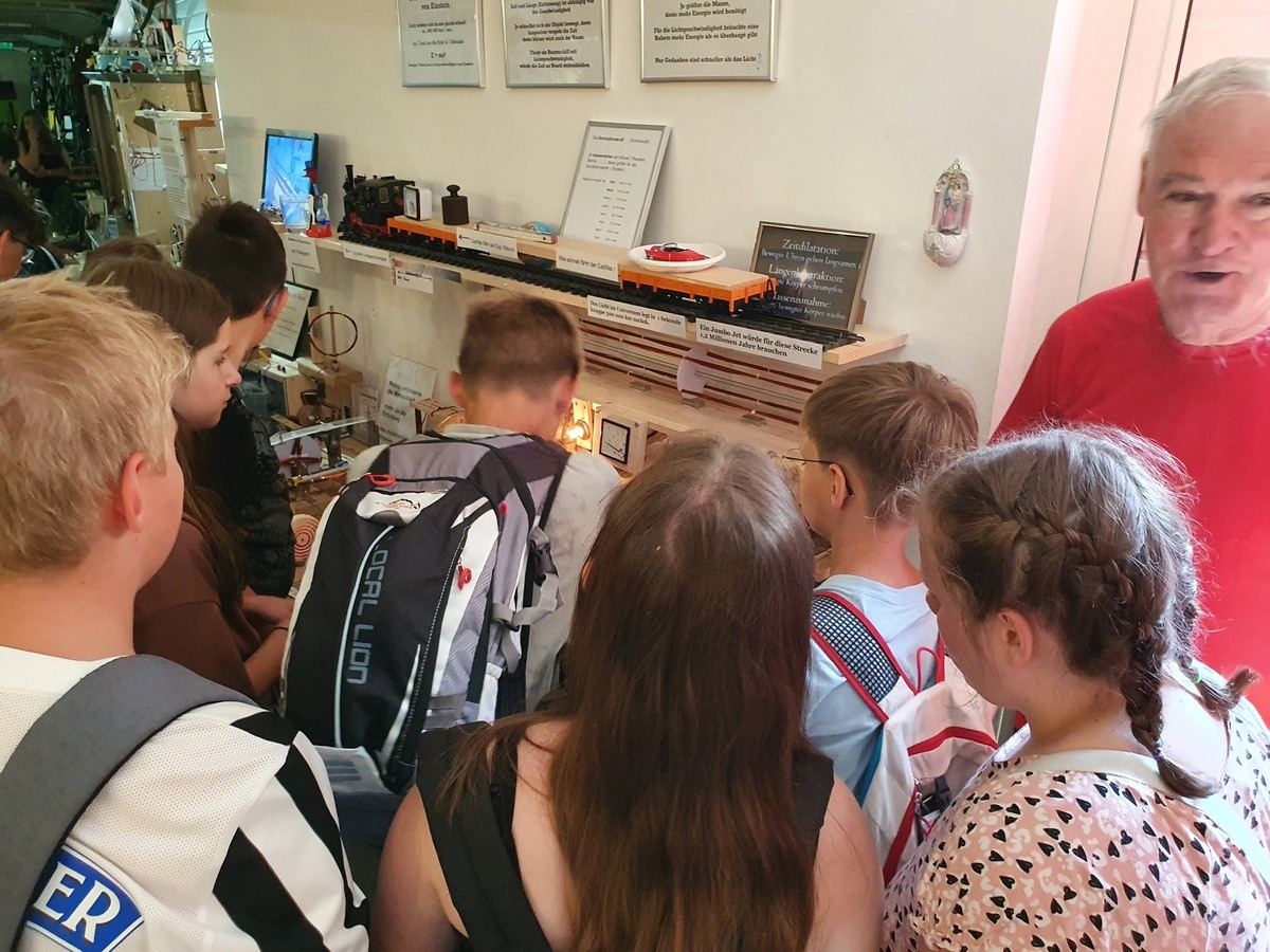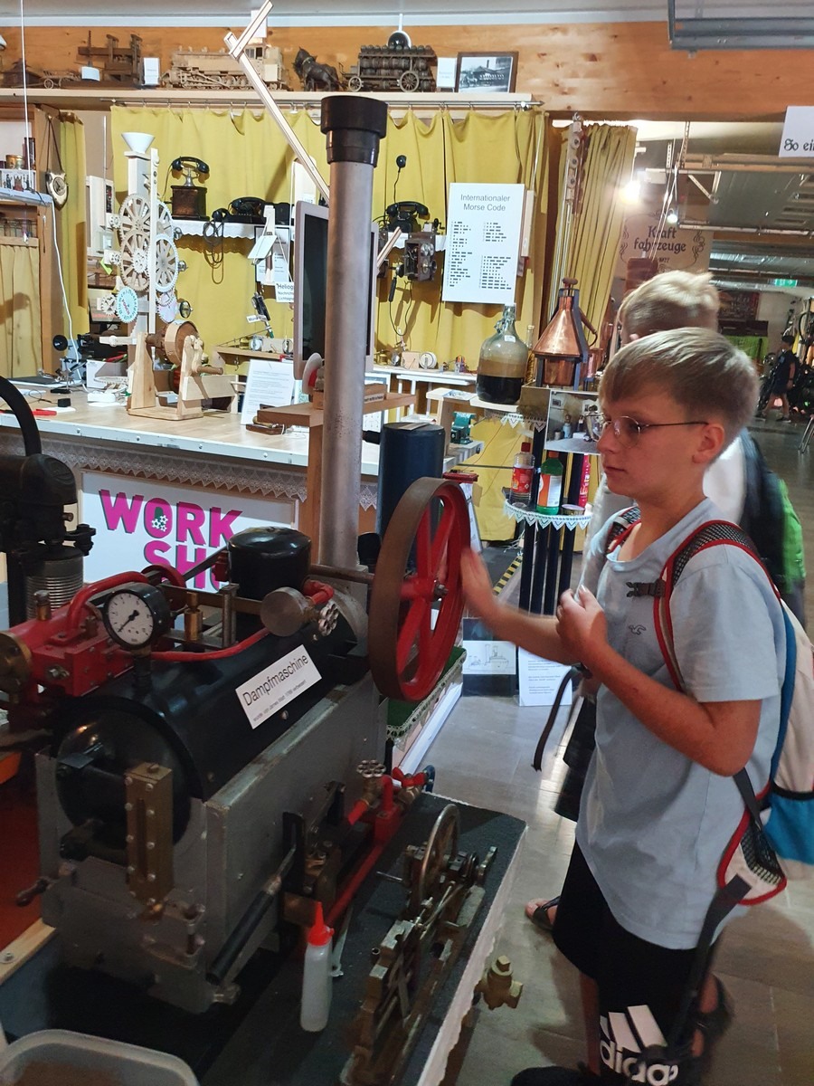 Im Anschluss ging es in die Nostalgiewelt Posch. Als erstes wurde das Flugzeug – eine Antonov – am Dach des Museums bestiegen und die Schülerinnen und Schüler durften im Cockpit Platz nehmen. Volle 2 Stunden wurde das Museum besichtigt und verschiedene Dinge darin auch ausprobiert. Oldtimer ab 1886, Puppen & Teddybären, Krüge & Trinkgefäße, nachgebaute Schlösser- & Burgen, Schmetterlinge & Insekten, der längste Elektromotor, Fahrräder, verschiedenste Erfindungen, auch sehr viele kuriose, antike Radios, Plattenspieler und Tonbandgeräte und vieles mehr. Ebenso durften die Schülerinnen und Schüler zusammen mit Herrn Posch Wasserstoff herstellen und diesen anzünden. Es hat allen sehr gut gefallen: Die Schülerinnen und Schüler konnten neue Dinge kennenlernen, mit vielem experimentieren, Spaß haben und dabei auch etwas Lernen.