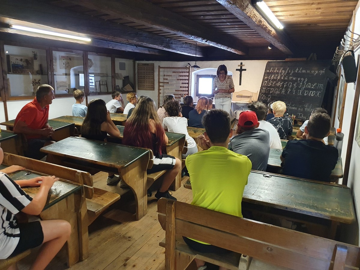 Im Museum im Tabor bekamen die Schülerinnen und Schüler Einblicke in das bäuerliche Leben und Arbeiten in der Südoststeiermark zu früheren Zeiten. Ebenso wurden verschiedene Handwerkszeuge und Berufe wie Schuster, Sattler, Schmiede, Lederer, Seiler, Wagner, Fassbinder und Schlosser vorgestellt. Auch durften die Schülerinnen und Schüler in einer historisch originalgetreuen Schulklasse auf den Stühlen und Tischen – stammend aus der Volksschule Hohenbrugg, vollständig original erhalten – Platz nehmen und sich hineinversetzen, wie sich Schülerinnen und Schüler früher gefühlt haben.