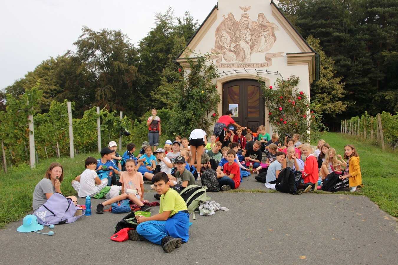 Am Freibad vorbei, führte uns der Weg erst in Richtung Buschenschank Nagl-Hiebaum. Nach einem kurzen Anstieg erreichten wir schließlich die Kapelle Schichenau, wo wir eine erste Jausenpause einlegten. Malerisch und weithin sichtbar über den Weinbergen von Nagl-Hiebaum gelegen, ist die Kapelle seit vielen Jahrzehnten ein Wahrzeichen St.Stefans, welches es sich lohnt, aus der Nähe zu betrachten.