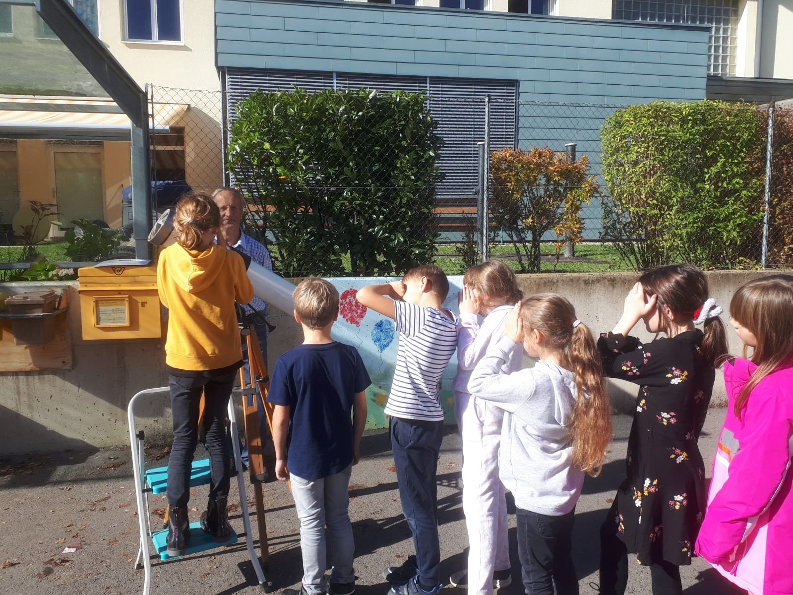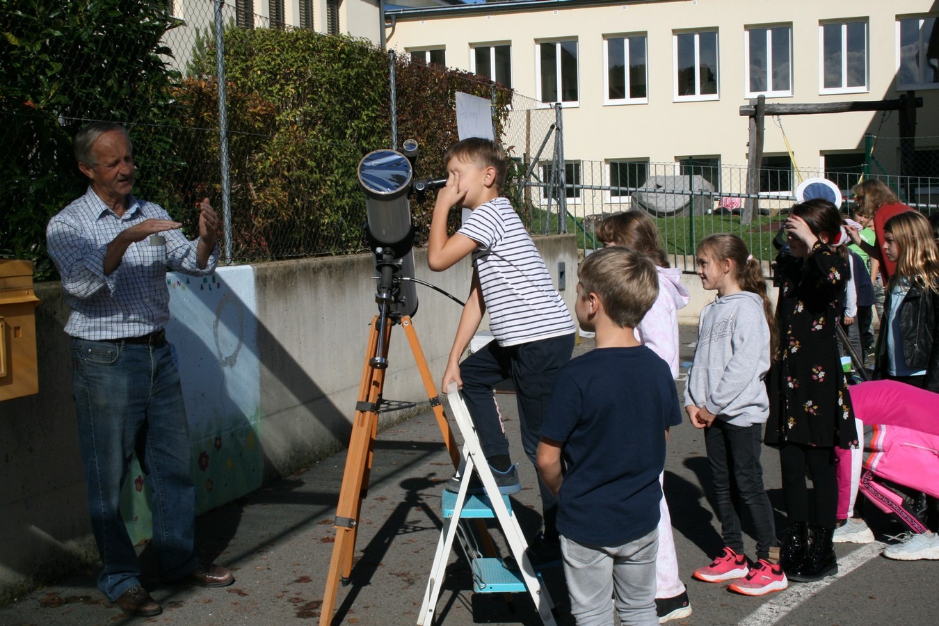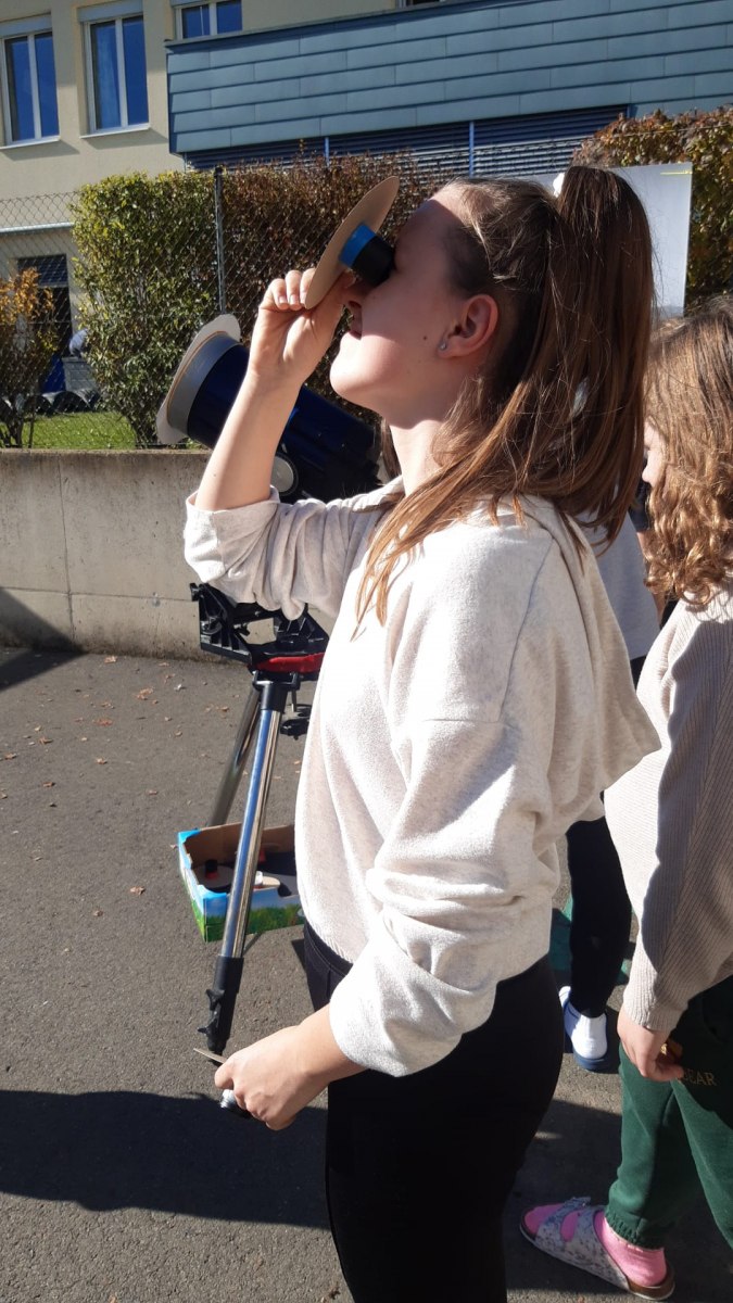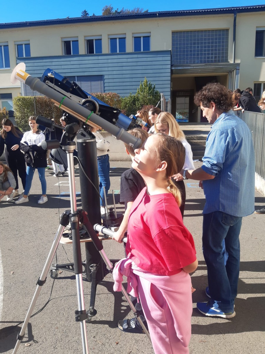 In Zusammenarbeit mit dem beigeisterten Amateurastronomen Josef Konrad und den Lehrkräften der Volks- und Mittelschule wurde dieses astronomische Ereignis mit den Schülerinnen und Schülern beider Schulen beobachtet.