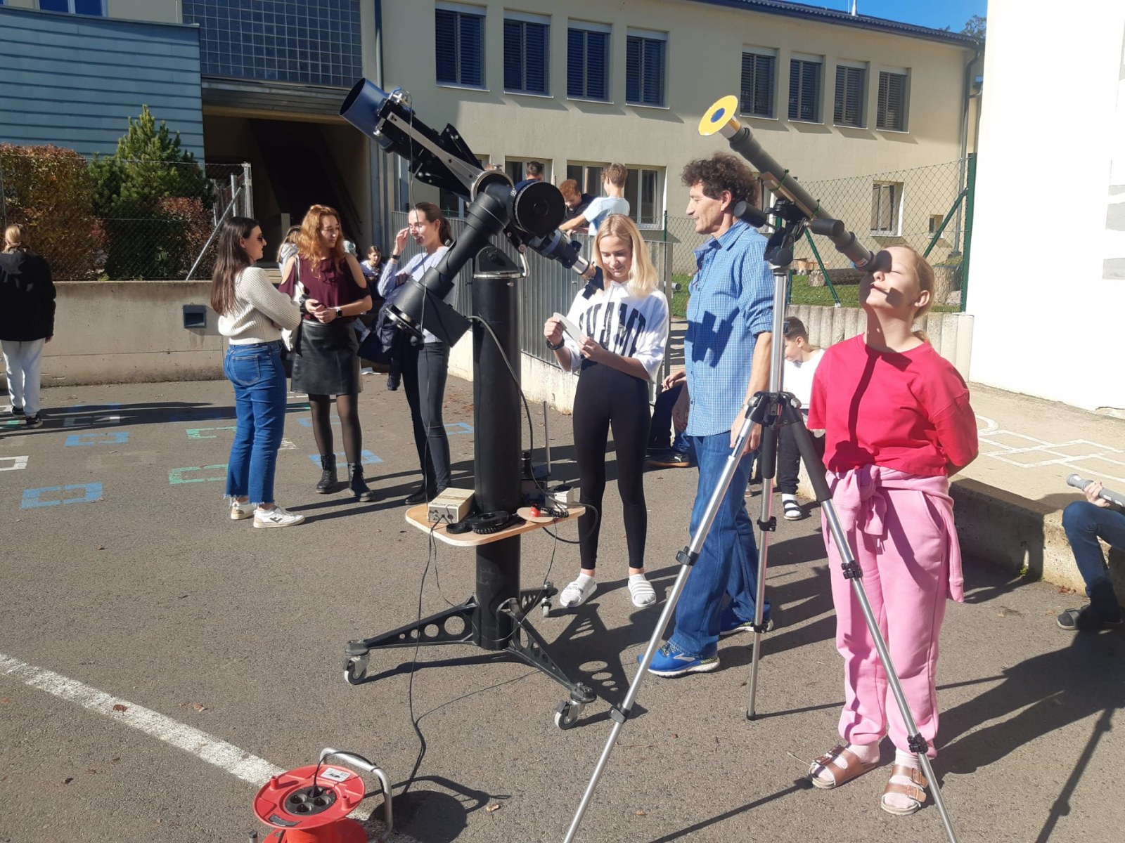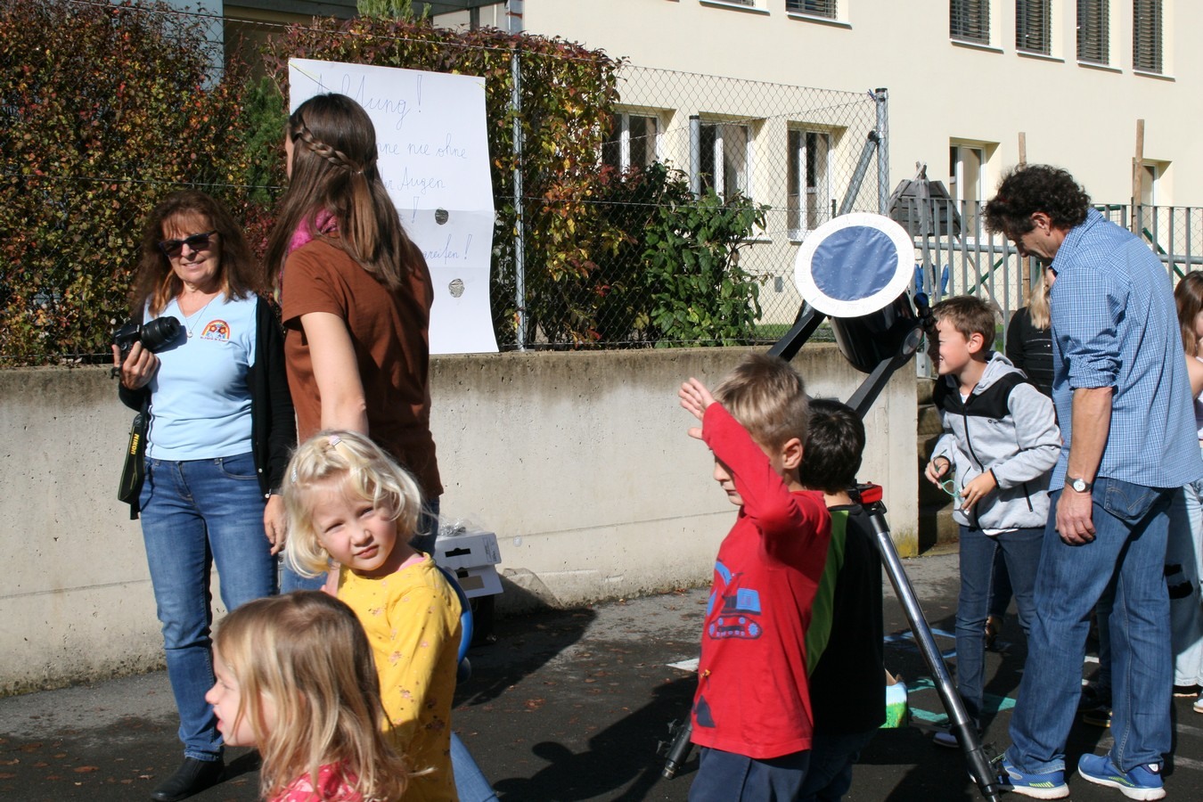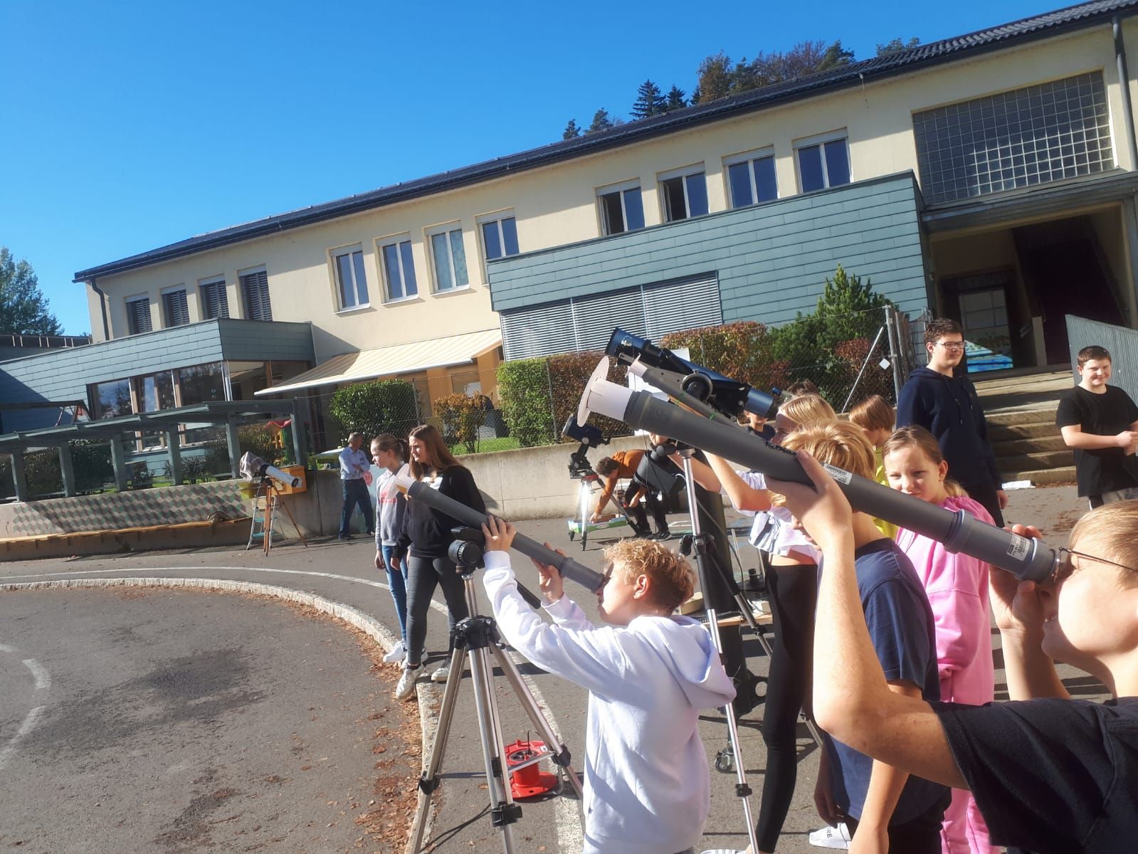 In Zusammenarbeit mit dem beigeisterten Amateurastronomen Josef Konrad und den Lehrkräften der Volks- und Mittelschule wurde dieses astronomische Ereignis mit den Schülerinnen und Schülern beider Schulen beobachtet.