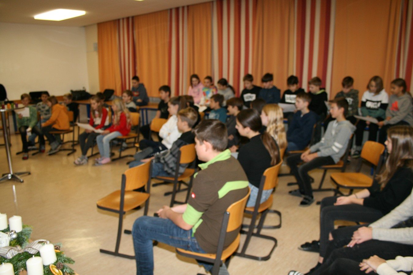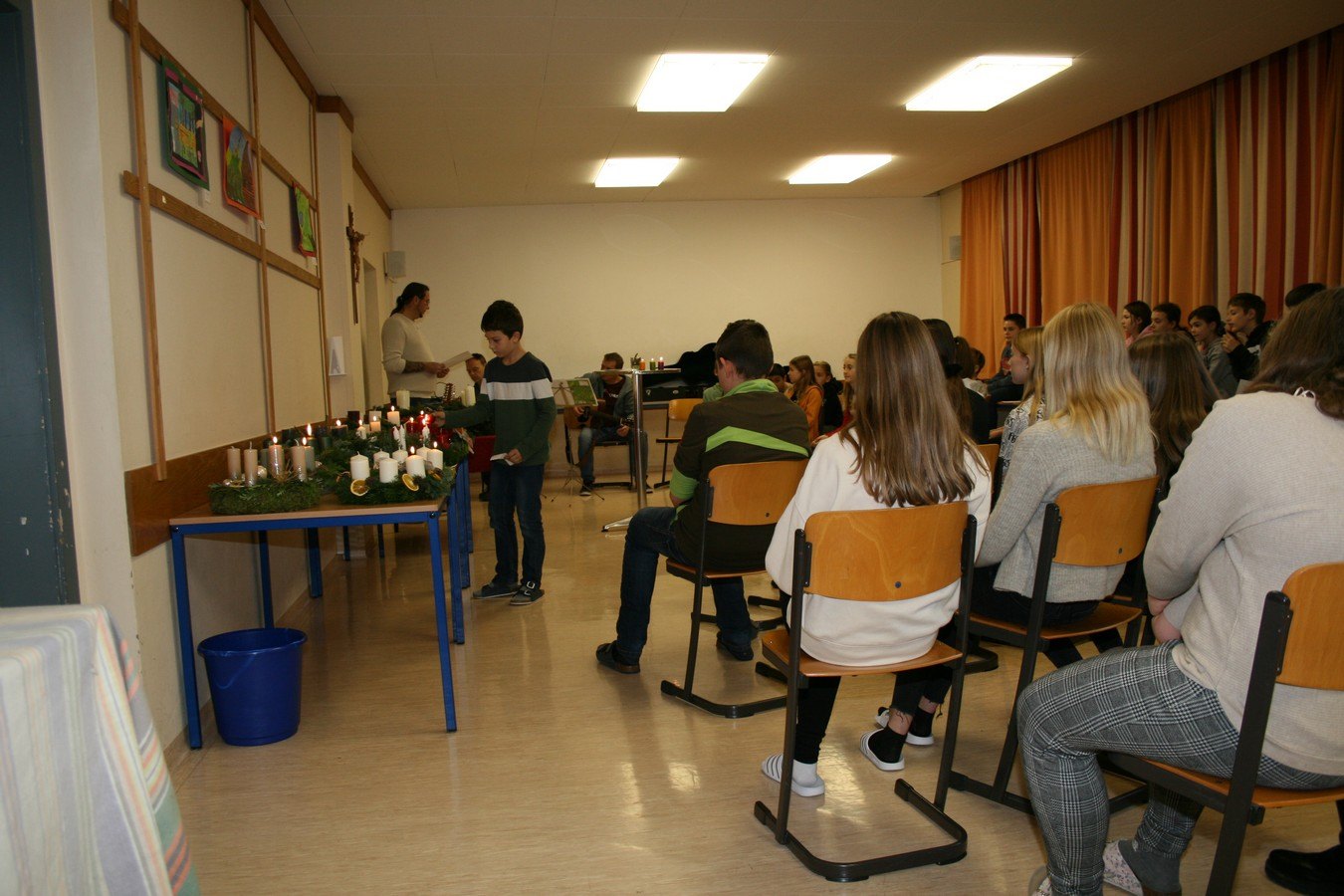 Am Freitag fand die Adventkranzweihe für die Adventkränze in den Klassen statt. Herr Christian Schenk, unser Pastoralreferent, gestaltete mit den Religionslehrern unserer Schule, Herrn Url und Herrn Baier im Mehrzweckraum eine kleine besinnliche Feier und die Klassensprecher durften die erste Kerze an den Adventkränzen anzünden. Ein großer Dank gebührt auch den Schüler*innen der 1b Klassen, die bei der Gestaltung der Feier mitgeholfen haben.