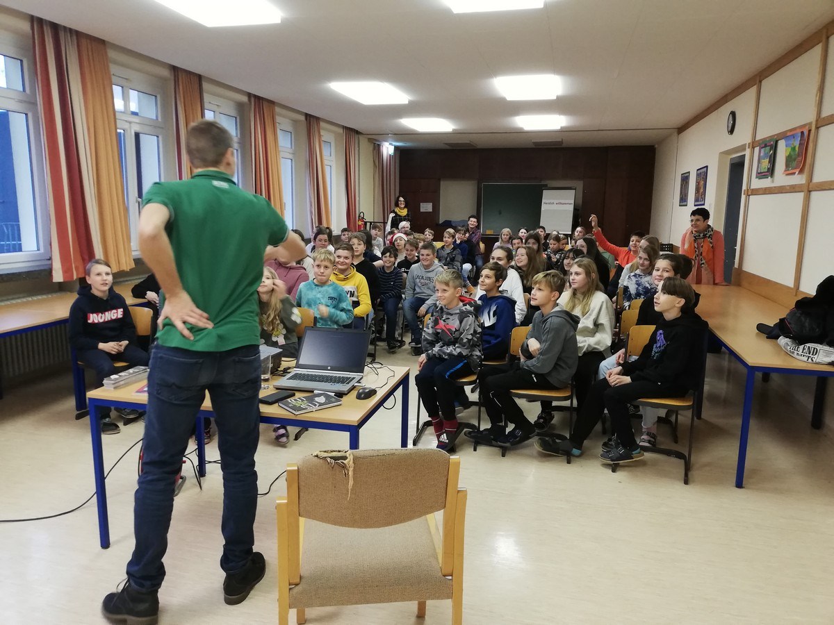Egal, ob es sich um eine Kriminalgeschichte, ein Horrorbuch oder eine Erzählung über seine Großeltern handelte, die Schüler lauschten fasziniert seinen Ausführungen.