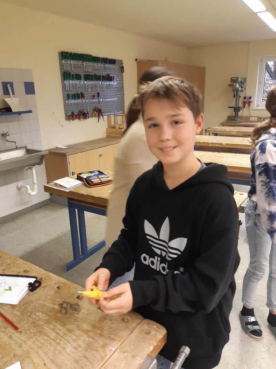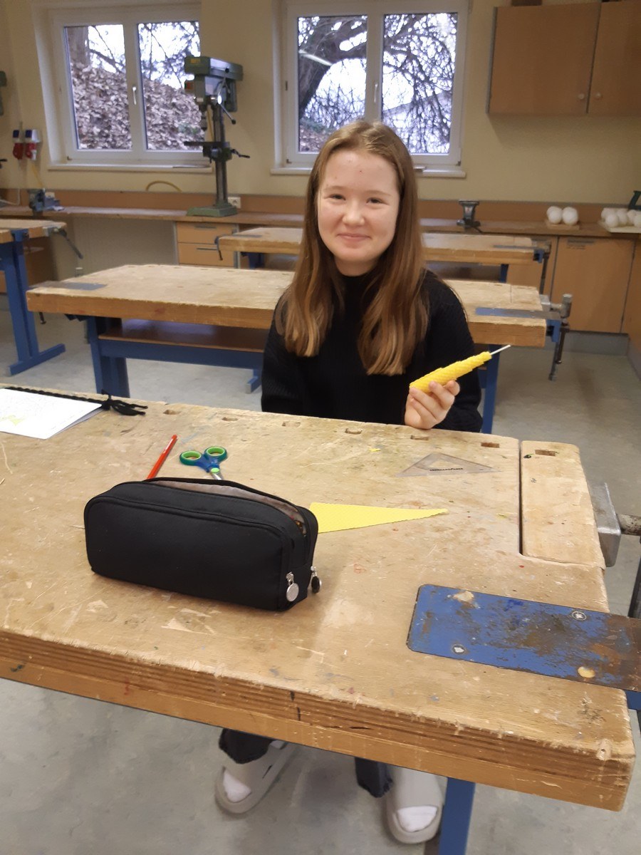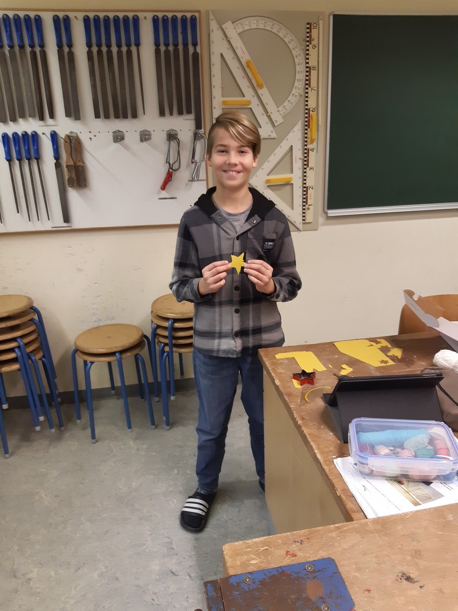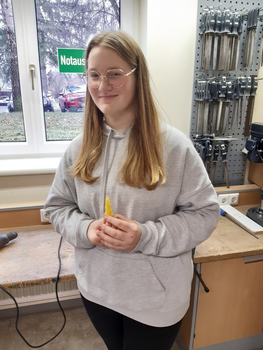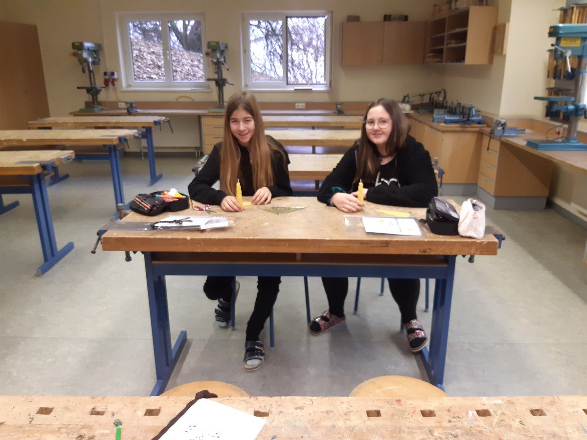 In der Frühaufsicht wurden wir, die zweiten Klassen, in vier Gruppen aufgeteilt. Bei Frau Maier sangen wir sowohl deutsche als auch englische Weihnachtslieder, dazu bastelten wir ein kleines Musikheftchen. Frau Maier begleitete uns mit wunderschöner Musik auf dem Klavier. Die Stunde verging wie im Flug. Die Autorenlesung war in der zweiten Stunde. Dort spielte uns der Autor Hannes Hörndler aus seinen Büchern einige Szenen vor – das fanden wir alle sehr lustig. Zum Abschluss gab es ein Gewinnspiel, bei dem man sein Buch „Verdammt! Ich bin ein Buch!!!“ gewinnen konnte. Frau Felgitscher machte mit uns Kerzen aus Bienenwachs. Ob eine große oder zwei kleine war uns frei überlassen. Wir tanzten und sangen zur weihnachtlichen Musik. Mit Frau König bastelten wir ein Kerzenglas mit Leim, Seidenpapier und kleinen Perlen. Wir hörten auch in dieser Stunde Weihnachtsmusik. Nun kam auch schon die letzte Stunde des Projekttages mit Frau Kaspar. Wir bastelten mit ihr einen voll süßen Faltengel. Der Kopf musste mit einer Heißklebepistole angeklebt werden, das machte keinem Probleme,dafür aber die Schnur, die man durch den Kopf bzw. durch die Holzperle fädeln musste. In dieser Stunde hörten wir – genauso wie in den anderen – Musik und sangen dazu. Uns allen hat der Projekttag sehr gefallen.