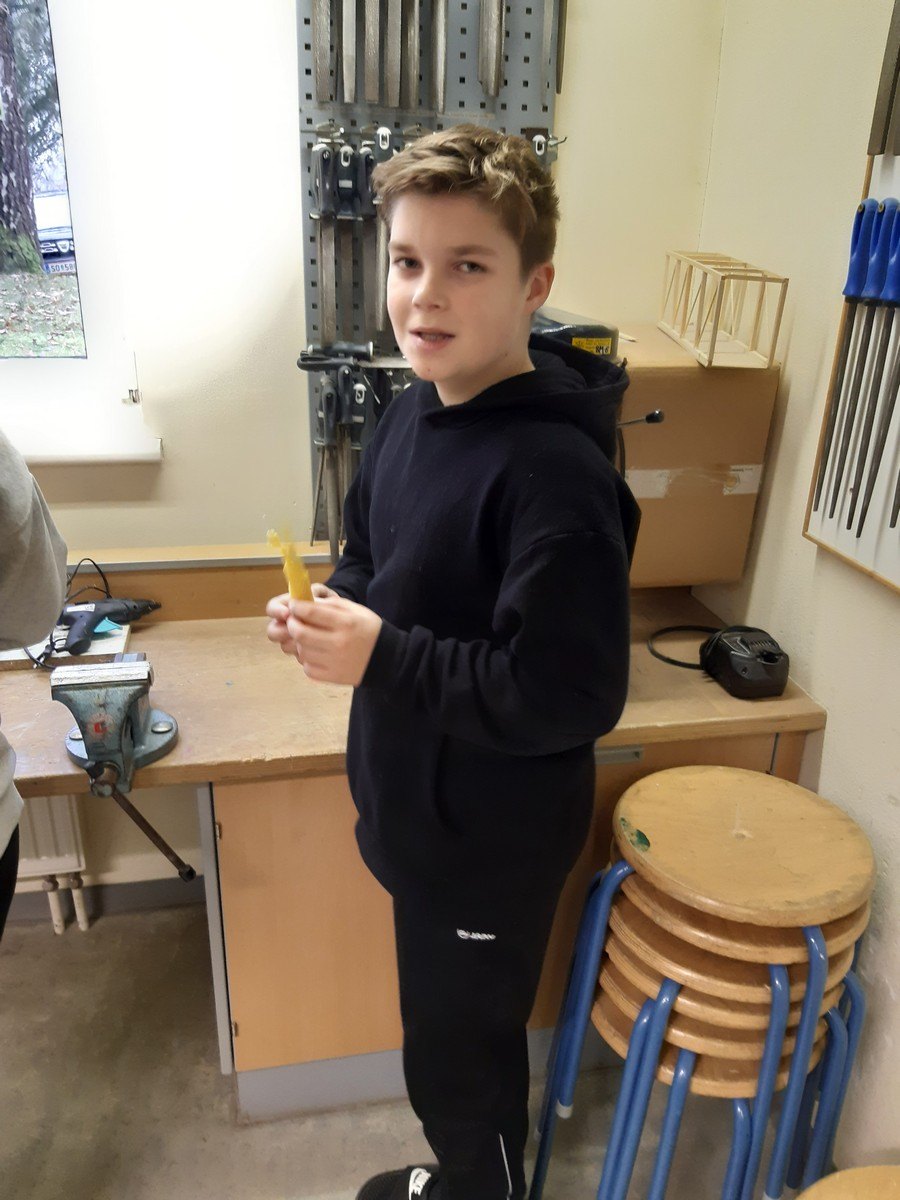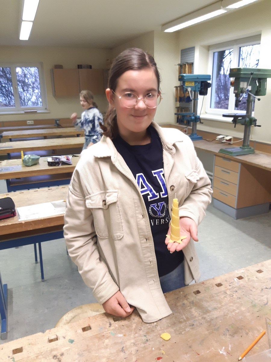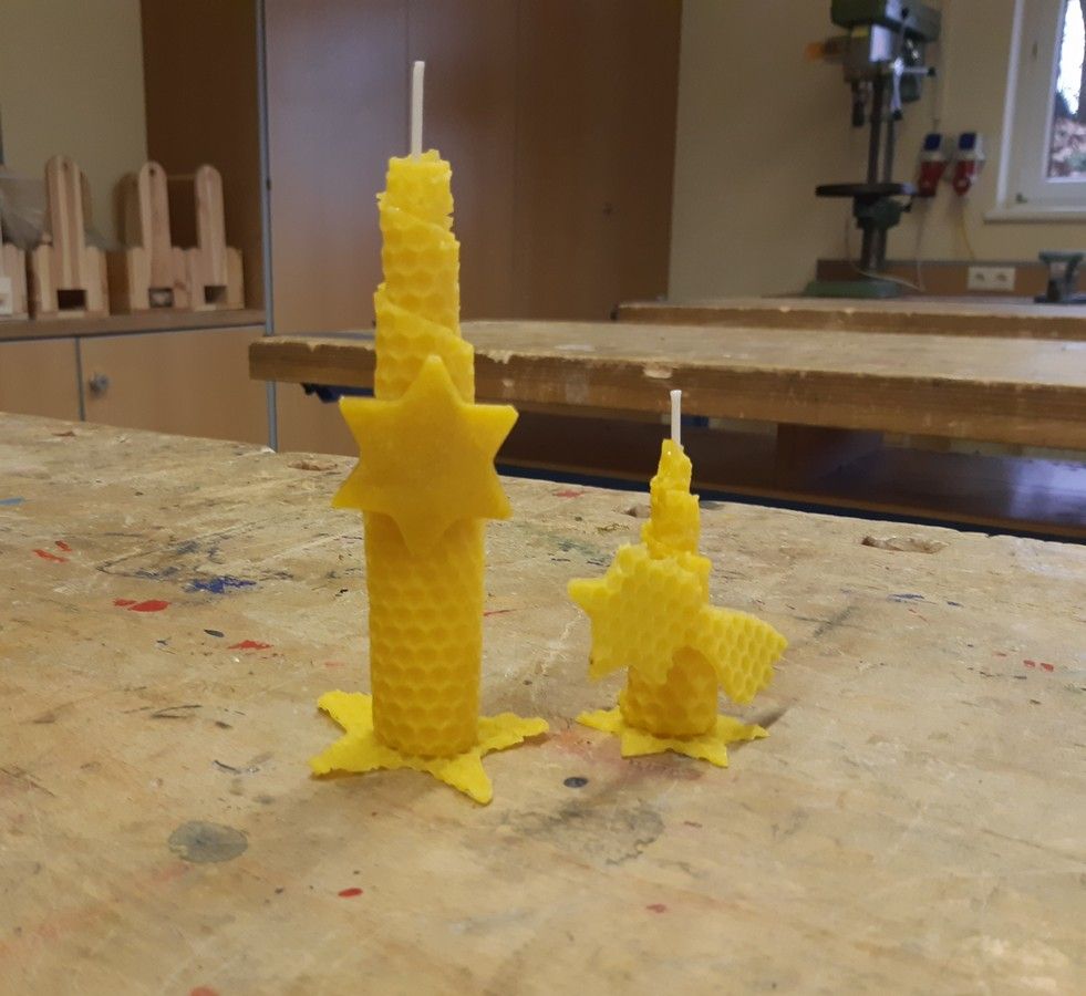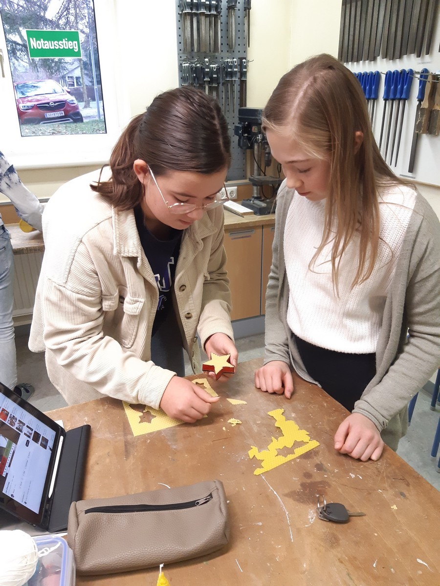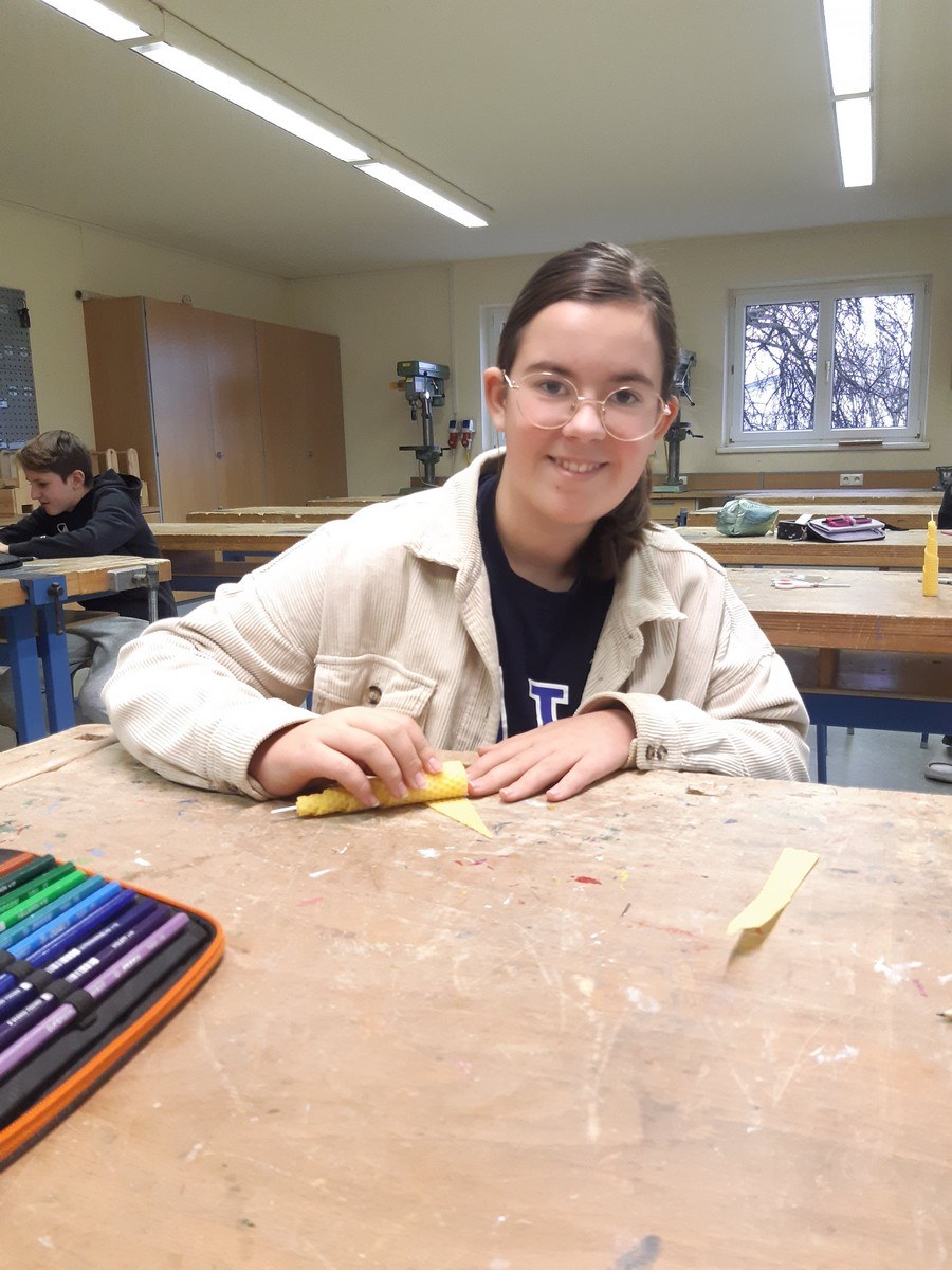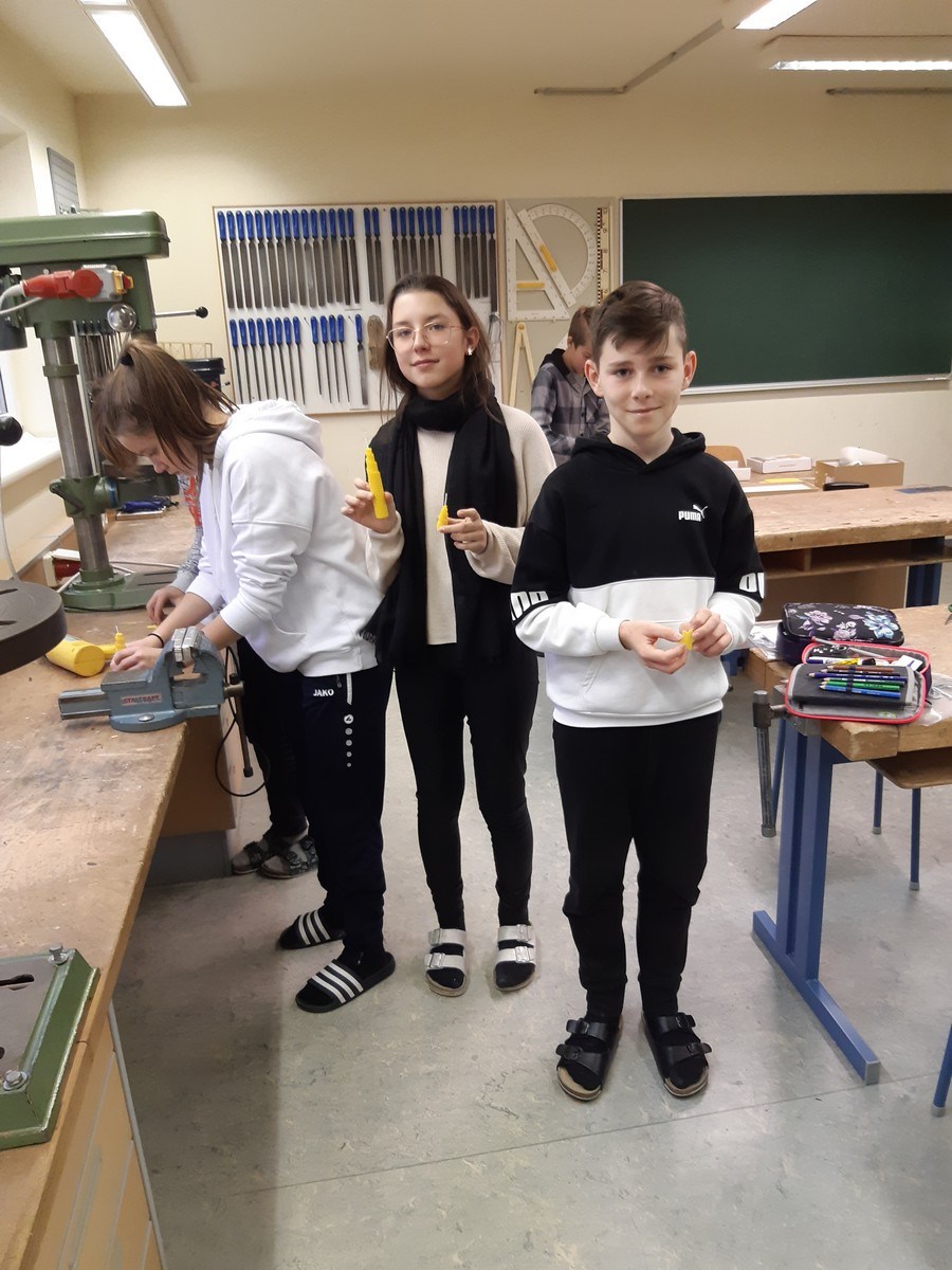 In der Frühaufsicht wurden wir, die zweiten Klassen, in vier Gruppen aufgeteilt. Bei Frau Maier sangen wir sowohl deutsche als auch englische Weihnachtslieder, dazu bastelten wir ein kleines Musikheftchen. Frau Maier begleitete uns mit wunderschöner Musik auf dem Klavier. Die Stunde verging wie im Flug. Die Autorenlesung war in der zweiten Stunde. Dort spielte uns der Autor Hannes Hörndler aus seinen Büchern einige Szenen vor – das fanden wir alle sehr lustig. Zum Abschluss gab es ein Gewinnspiel, bei dem man sein Buch „Verdammt! Ich bin ein Buch!!!“ gewinnen konnte. Frau Felgitscher machte mit uns Kerzen aus Bienenwachs. Ob eine große oder zwei kleine war uns frei überlassen. Wir tanzten und sangen zur weihnachtlichen Musik. Mit Frau König bastelten wir ein Kerzenglas mit Leim, Seidenpapier und kleinen Perlen. Wir hörten auch in dieser Stunde Weihnachtsmusik. Nun kam auch schon die letzte Stunde des Projekttages mit Frau Kaspar. Wir bastelten mit ihr einen voll süßen Faltengel. Der Kopf musste mit einer Heißklebepistole angeklebt werden, das machte keinem Probleme,dafür aber die Schnur, die man durch den Kopf bzw. durch die Holzperle fädeln musste. In dieser Stunde hörten wir – genauso wie in den anderen – Musik und sangen dazu. Uns allen hat der Projekttag sehr gefallen.
